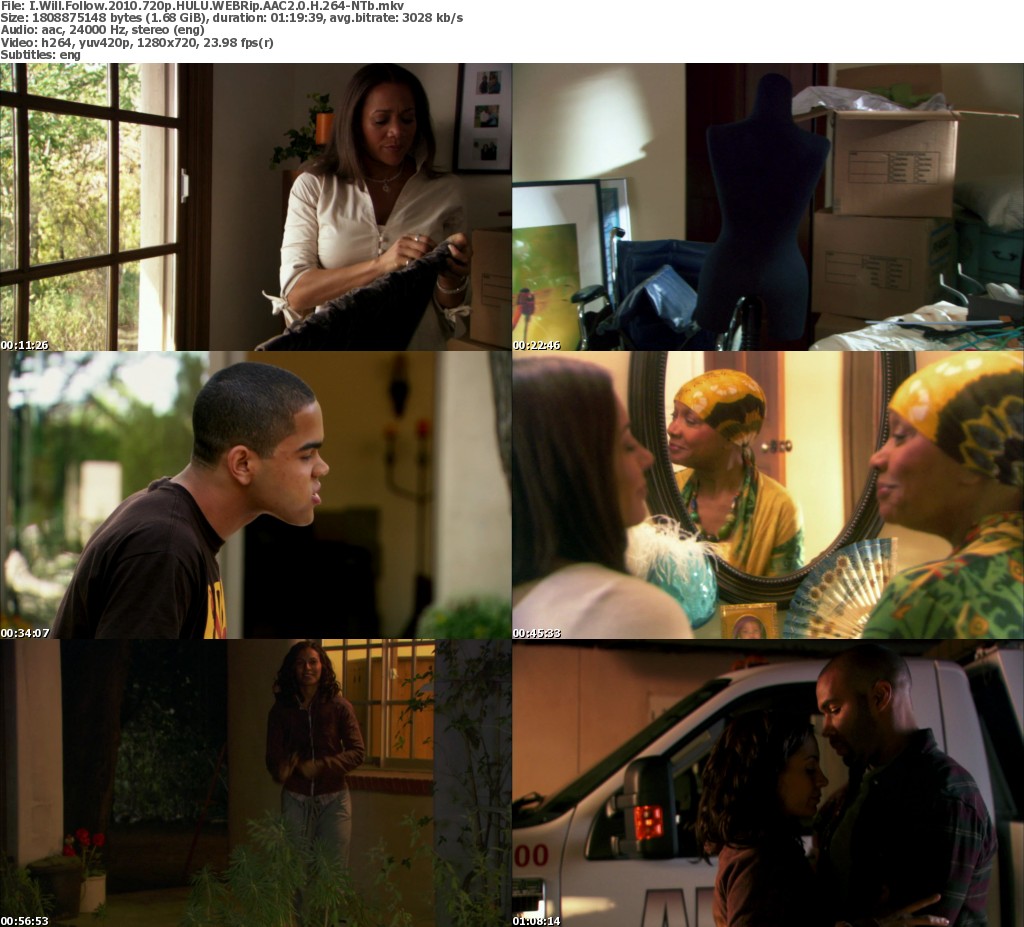 Release Name: I.Will.Follow.2010.720p.HULU.WEBRip.AAC2.0.H.264-NTb