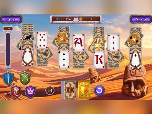 Experience the spirit of medieval Europe through atmospheric backgrounds, noble challenges, and a story filled with courage, passion, and determination. With 300 handcrafted solitaire layouts of varying difficulty, you will guide Alan through battles of wit, strategy, and skill. Build powerful combos, unlock helpful bonuses, and overcome obstacles that stand between Alan and his destiny.