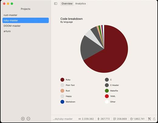 Easy-to-use: Just open CodeCounter and drag’and’drop one or more of your code projects. And don’t worry; you can always add more later on and monitor them all at the same time! Customizable: With different settings to play with, you can rest assure that the results are as accurate as possible. Exclude specific file extensions, generated or minified files? Absolutely! Versatile: You may see all lines of code either by language – code lines, blank lines, comments, etc – or by file. Do you want all that in nice-looking chart too? Done.