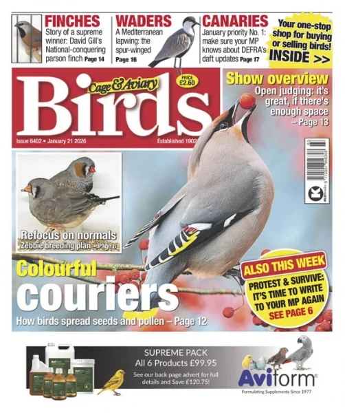 Cage & Aviary Birds is written by bird experts for bird fanciers and is packed with club, show and bird related news, advice, birds for sale and comment. Established in 1902, Cage & Aviary Birds provides a wealth of practical advice and tips from the top names in the bird world, plus opinion, controversy, species and hobbyist profiles and nostalgia.