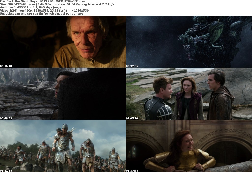 Plot: The ancient war between humans and a race of giants is reignited when Jack, a young farmhand fighting for a kingdom and the love of a princess, opens a gateway between the two worlds.