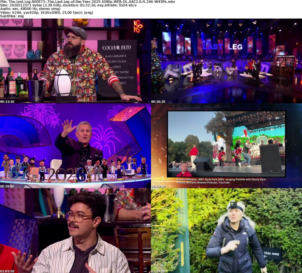 Adam Hills, Josh Widdicombe and Alex Brooker host a gloriously irreverent send-off to 2025. Special guests joining Adam, Josh and Alex in the studio to look back at the highs and lows of the past year are Sir Lenny Henry, Phil Wang, Maisie Adam, Dani Dyer, Pete Doherty, Alex James, Lucy Bronze and Hannah Botterman, plus a special surprise from a Celebrity Traitors star. Featuring hilarious VTs, joyously raucous games and special musical performances, together they’ll take a good-natured look back at 2025, all while squinting at the looming promise (or is it?) of 2026. With their trademark blend of acerbic wit, awkwardly insightful commentary and the occasional festive gesture, the gang will dive into the year’s most ridiculous headlines, aided by the ever-popular hashtag #isitok. Expect a night of the unmatched humour that has made The Last Leg a multi-award-winning favourite.